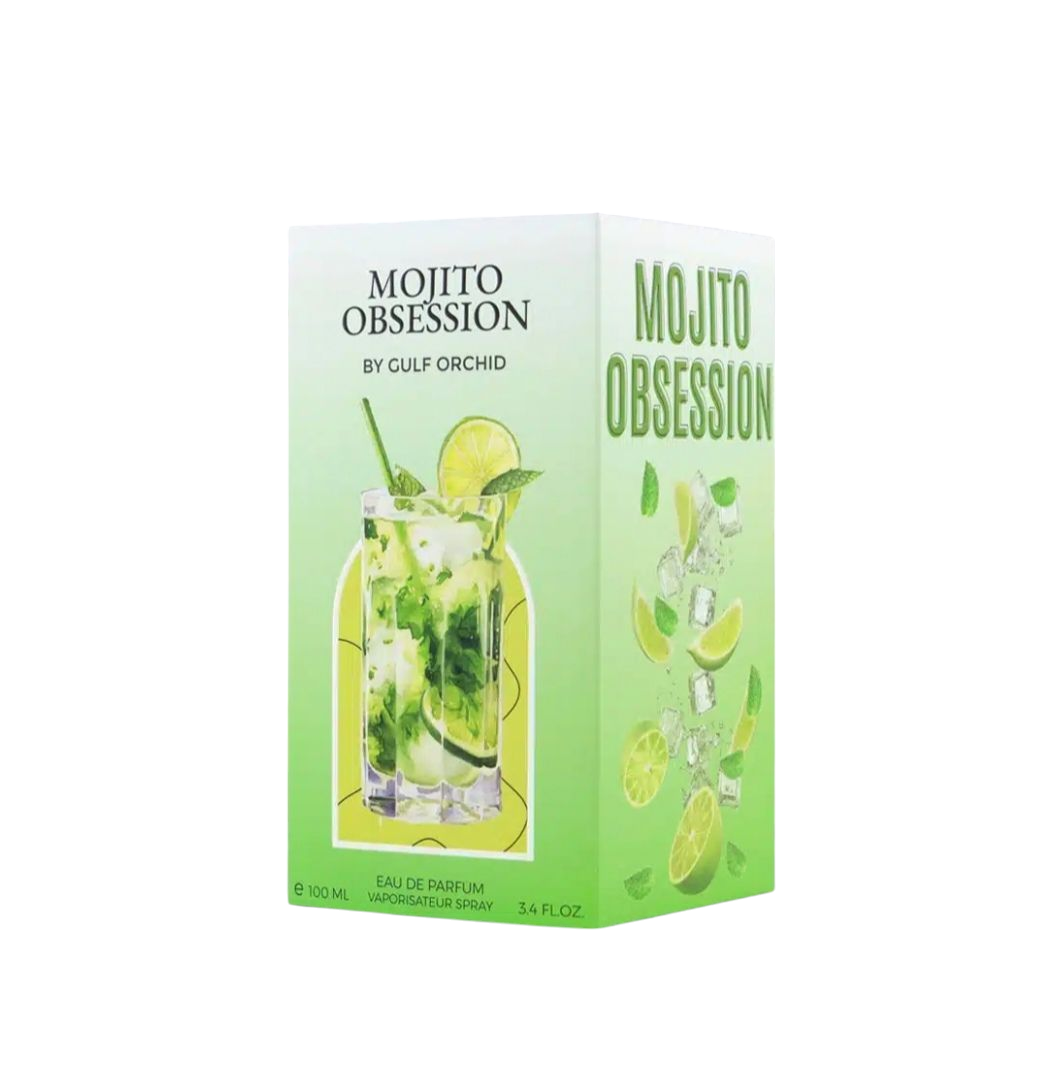 Mojito Obsession de Gulf Orchid es una fragancia de la familia olfativa Cítrica para Hombres y Mujeres. Esta fragrancia es nueva. Mojito Obsession se lanzó en 2025. Las Notas de Salida son limón (lima ácida), cardamomo, menta, canela, maracuyá (fruta de la pasión) y durazno (melocotón); las Notas de Corazón son ámbar, violeta y flores blancas; las Notas de Fondo son almizcle, cedro, incienso y azúcar.