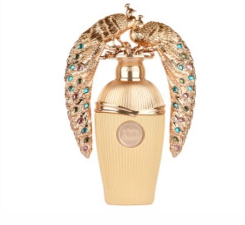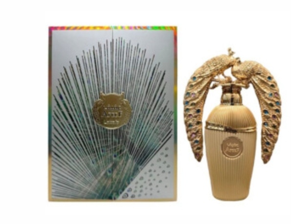 Afeef de Lattafa es una fragancia femenina que combina frescura y calidez en un aroma sofisticado y versátil. Inspirada en la elegancia y feminidad de la mujer moderna, esta fragancia es perfecta para destacar tanto de día como de noche. Su presentación en un frasco dorado con detalles en forma de pavos reales refleja lujo y exclusividad.