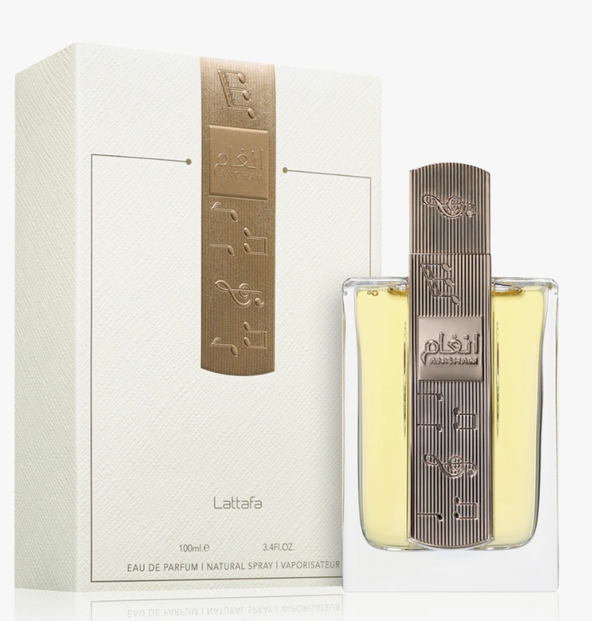 Angham de Lattafa Perfumes es una fragancia de la familia olfativa Oriental Vainilla para Hombres y Mujeres. Esta fragrancia es nueva. Angham se lanzó en 2024. Las Notas de Salida son jengibre, mandarina y pimienta rosa; las Notas de Corazón son lavanda, praliné, cacao y jazmín; las Notas de Fondo son vainilla, ámbar y almizcle.