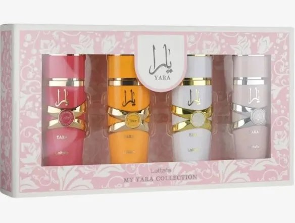 Le caja de perfume en miniatura atrae a los fans de aromas refinados quecoleccionables. Con su práctico formato de viaje, este tipo de caja resulta tan atractiva como regalo como para uno mismo. Diseñada para permitir descubrir nuevas fragancias o satisfacer al coleccionista exigente, combina elegancia y practicidad en una atractiva cajita. Enfoque en una caja compuesta por cuatro miniaturas de perfumes de mujer de la marca Lattafa, cada uno en 25 ml, con acordes afrutados, florales, gourmand y amaderados, para un verdadero viaje sensorial.