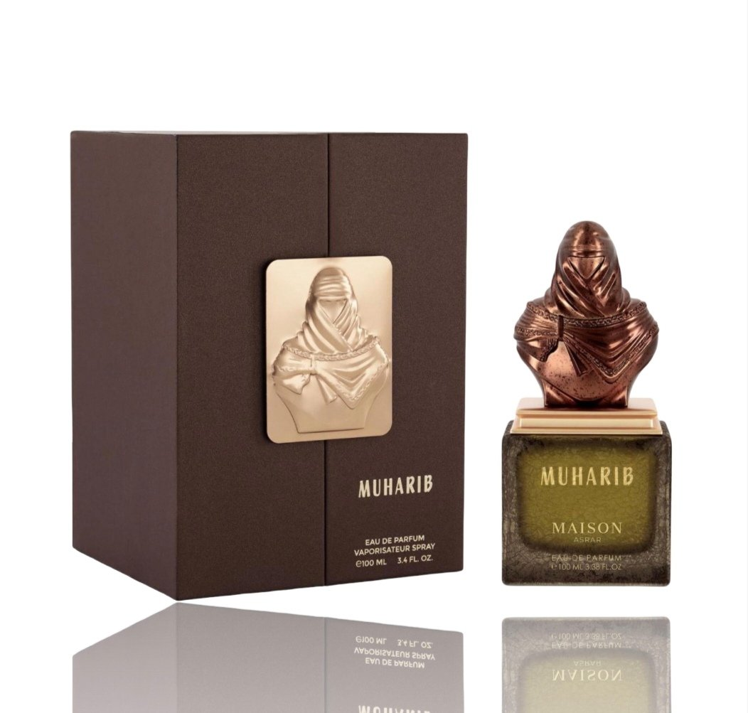 Muharib de MAISON ASRAR es una fragancia de la familia olfativa Aromática Especiada para Hombres y Mujeres. Esta fragrancia es nueva. Muharib se lanzó en 2025. Las Notas de Salida son lavanda, limón (lima ácida) y bergamota; las Notas de Corazón son canela, miel y madera de cachemira; las Notas de Fondo son tabaco, haba tonka y jazmín.